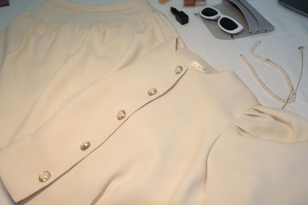 Bộ áo váy bồng nữ tính phù hợp để đi làm, đi dạo phố và cafe với bạn bè. Áo tay bồng xếp ly, ngắn tay. Hai bên sườn áo xếp ly trước sau. Chân váy dáng chữ A, có hoạ tiết xếp ly phần hông phá cách. Váy dài quá đầu gối.